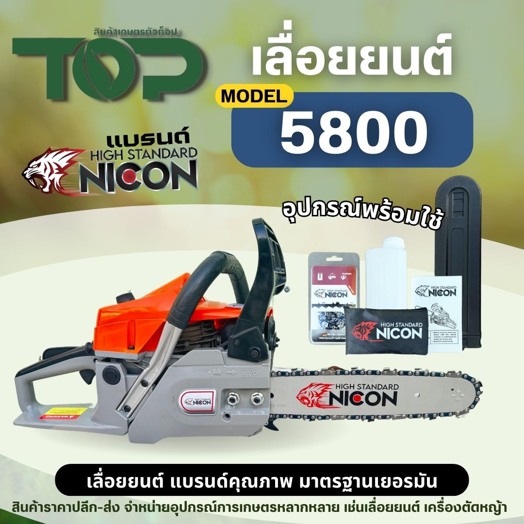(เลื่อย5800) เลื่อยยนต์ เลื่อยโซ่ สีเทา เครื่องเลื่อยยนต์2จังหวะ พร้อมบาร์โซ่ขนาด 11.5 นิ้ว